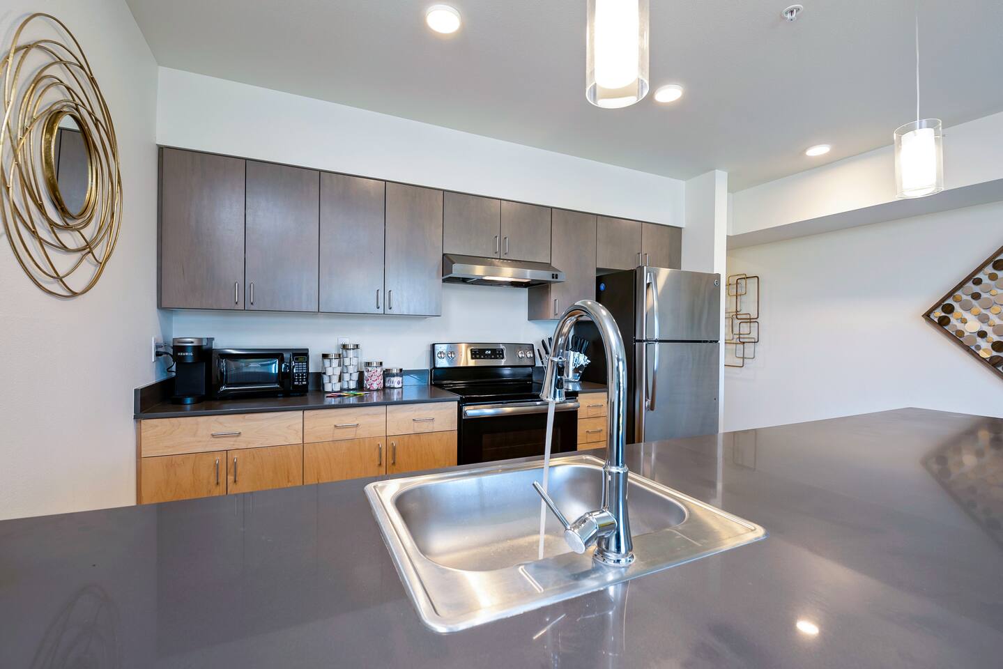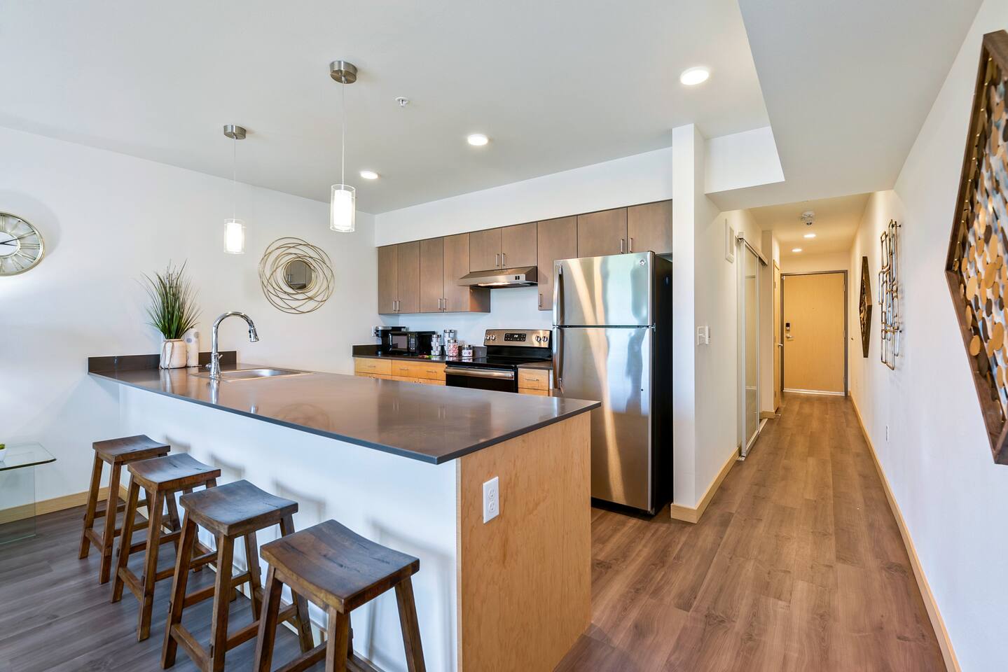 Your Seattle Business Hub: Professional Accommodation with Productivity in Mind The ultimate corporate stay solution in Seattle - fully equipped for your extended work assignment. Business-Ready Amenities + Work Efficiently: Enterprise-grade cable internet (940Mbps) ensures flawless video conferencing and secure VPN connections + Dedicated Workspace: Comfortable setting for productive remote workdays + In-Unit Laundry: Maintain your professional wardrobe without the hassle of laundromats + Smart Home Features: Keyless entry for secure, contactless check-in Prime Location for Professionals + Strategic Location: Just 2.8 miles to Downtown Seattle business district + Transit Optimized: Only 0.2 miles (3-minute walk) to Beacon Hill Link Light Rail Station for easy commuting and airport access (15 miles to SEA) + Walkable Neighborhood (86 Walk Score): El Quetzal, The Oak, Fresh Flours, and Perihelion Brewery all within 5-minute walk + Major Corporate Access: 3 miles to Amazon SLU campus, 10 miles to Microsoft Bellevue offices, quick access to Seattle's tech corridor + Easy Highway Access: Just 0.5 miles to I-90 and 0.7 miles to I-5 for efficient daily commuting throughout the region Executive Comfort This sophisticated 1-bedroom apartment in a secure building provides all the comforts of home while on assignment: Technology & Connectivity - High-speed cable internet (940Mbps) for simultaneous devices. - 55" Ultra HD 4K TV in living room with Youtube TV for staying updated - 43" 4K TV in bedroom with streaming services - Multiple charging stations throughout Work-Life Balance Features - Private balcony with inspiring Eastside views of Bellevue across Lake Washington - Rooftop dining area with BBQ for entertaining colleagues - Fully equipped kitchen for preparing healthy meals - Queen bed with premium bedding for proper rest between workdays Business Convenience - Secure building with controlled access - Free street parking with provided parking pass - Professional cleaning between guests with thorough sanitizing - Extended stay provisions with optional restocking service. - EV charger nearby Kitchen & Essentials The fully-appointed kitchen includes everything needed for your extended stay: - Complete cookware and dishware - Keurig coffee maker with starter pods - Tea selection - Basic pantry items for meal preparation Restocking of supplies available for longer assignments (additional fee). Perfect For Your 30+ Day Corporate Assignment With proximity to Seattle's major employers and a walk score of 85, this location offers the ideal balance of work accessibility and after-hours convenience. Whether you're here for a month-long project or a quarterly assignment, this apartment provides the professional atmosphere you need with all the comforts of home. Pets welcome for longer stays - please inquire about pet policies and fees.