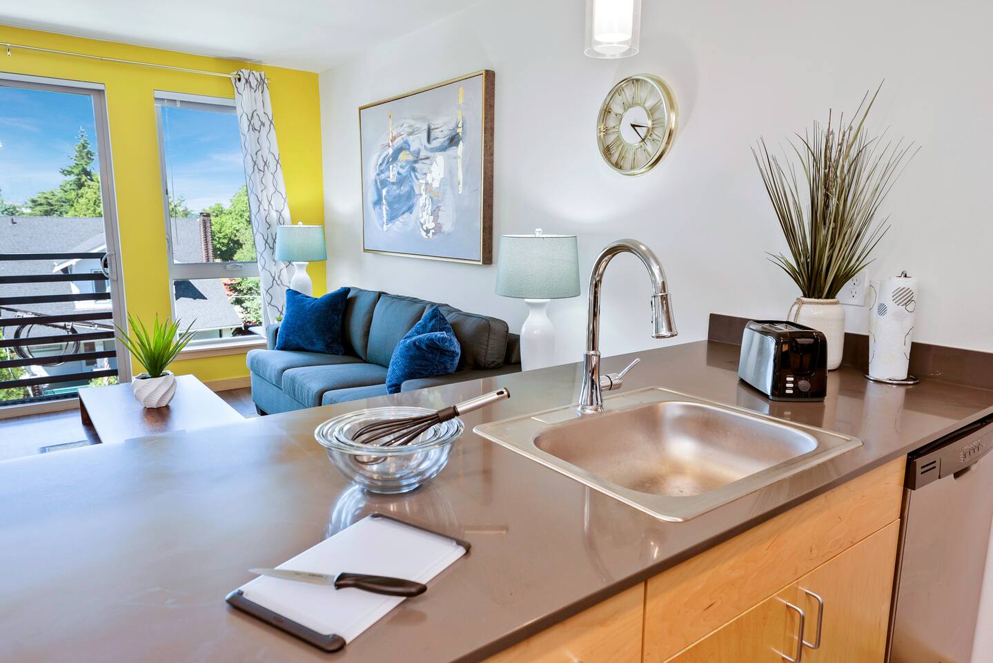 Keep it simple at this peaceful and centrally-located place. + You'll enjoy a fully stocked home w/fast wifi, streaming tv services, and a washer and dryer in unit, all with your comfort in mind + Step out on the private balcony to experience stellar Eastside views of Bellevue across Lake Washington, with the Cascades gleaming in the background + All of Beacon Hill's attractions are within walking distance -> Light rail, restaurants, bars, grocery stores, & parks + Easy Access to I5 & I90