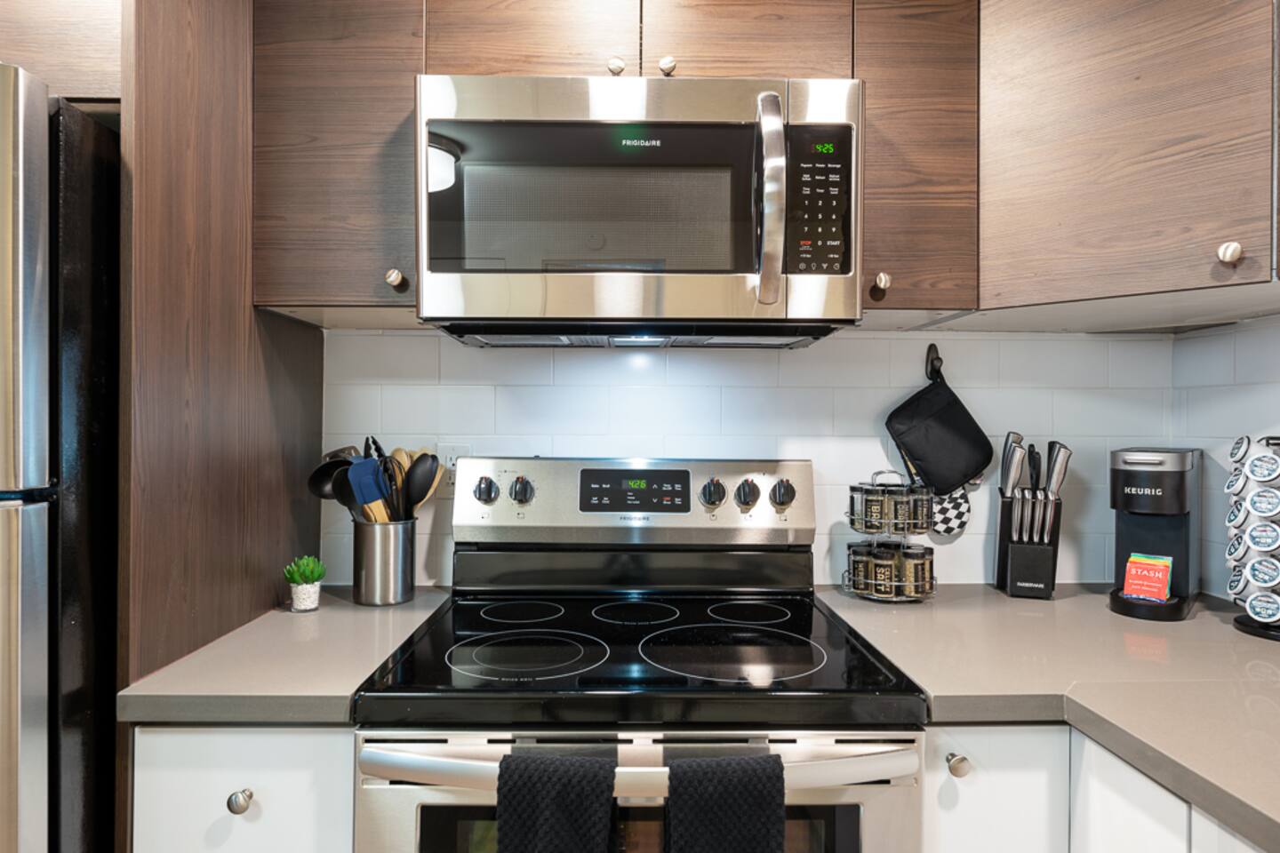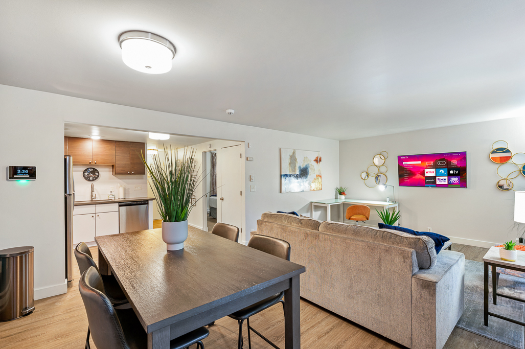 Corporate Retreat in Downtown Bellevue | Fully Equipped Designed specifically for relocating professionals and medical travelers seeking comfort and convenience. This newly updated space offers everything you need for a productive, stress-free extended stay just 0.8 mi from Downtown Bellevue. Premium Amenities for Extended Stays: • Work-Ready Setup: Fast 1Gig Cable Internet with 55" & 43" 4K Smart TVs • Comfortable Rest: Luxurious KING Bed + Queen Sleeper Sofa • Complete Kitchen: Fully equipped with air fryer, rice cooker, Keurig, and all essentials • Laundry Options: In-Unit Washer/Dryer + on-site laundry facilities (for larger loads) • Secure Access: Keyless Entry System & Designated Carport Parking Stall Prime Location for Professionals: • 10-minute walk: to Bellevue Square Mall & corporate offices • 15-minute walk: to Bellevue Transit Center • Multiple Bus Routes: with stop steps from complex • Easy Access: to Seattle (9.9 miles) and SEA Airport (15 miles) • 5-minute drive: to Downtown Bellevue Park & Bellevue Botanical Garden Arrive with just your suitcase to find everything meticulously prepared. Professional cleaning between guests, starter amenities provided, and responsive hosts committed to making your relocation or work assignment seamless and comfortable. Your turnkey solution in Bellevue awaits!