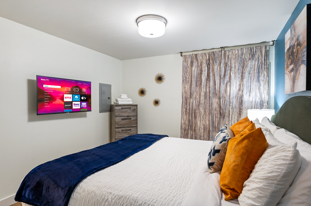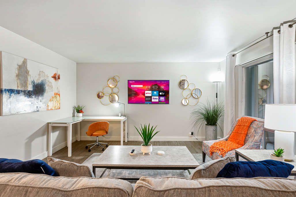 During your stay, you'll have complete private access to: • The entire apartment with furnishings and amenities • Designated carport parking space for one vehicle • Private furnished patio for morning coffee or evening relaxation • In-Unit Washer & Dryer • On-site laundry rooms for larger loads (small fee applies) • Two off-leash dog parks within the community (perfect for extended stays with pets) • Building entrance via secure keyless entry system For your convenience, we provide: • Detailed digital check-in guide sent 48 hours before arrival • 24/7 support • Contactless self check-in and check-out • Building access information, Wi-Fi details, and house manual in our digital guidebook Please note that our staff respects your privacy and will not enter the unit during your stay unless requested for maintenance or emergencies. Corporate relocators and medical professionals appreciate our seamless check-in process designed to accommodate late arrivals after long travel days.